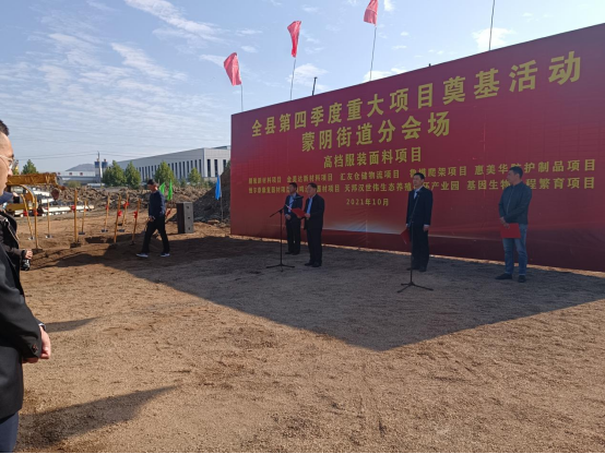 此次奠基开工仪式,在垛庄镇朋骏新材料项目现场设主会场,在蒙阴街道高档服装面料项目和野店镇基因生物工程繁育项目现场设分会场,共10个项目,总投资36.2亿元,涉及新型材料,康复器材、防护用品、纺织服装、生态养殖等多个领域、多个行业,科技含量高、带动能力强,符合蒙阴县“五大发展目标”,必将推动蒙阴县经济高质量发展。