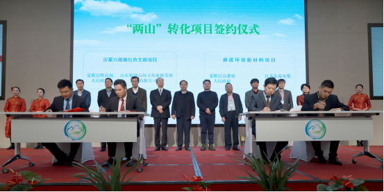 10月23日,在践行“绿水青山就是金山银山”理念蒙阴会议上,合同总投资额51.5亿元的6个“两山”转化项目顺利签约,涵盖生态文明实践区建设、红色文旅、科研成果转化、农业资源循环利用等领域。
