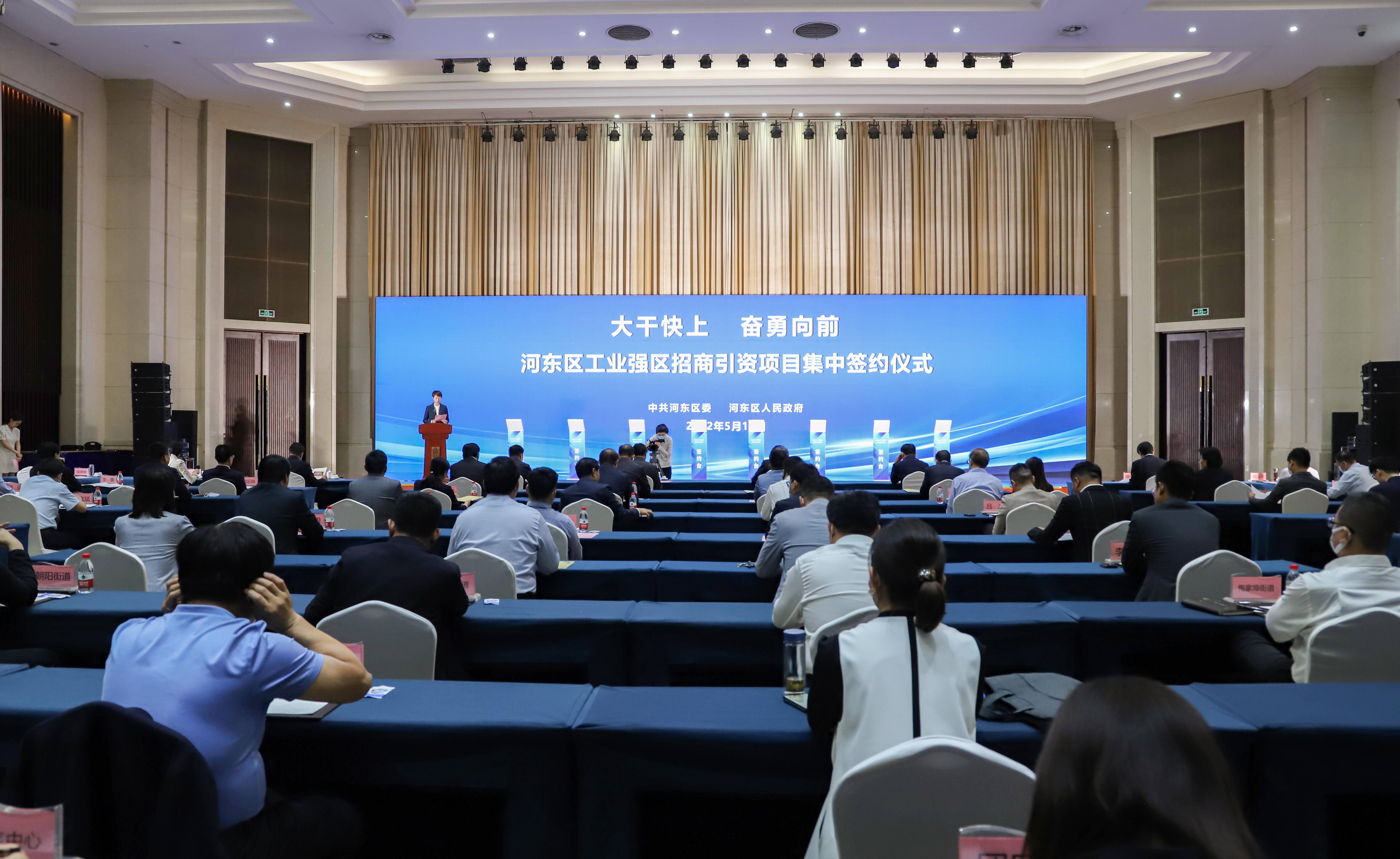 5月15日上午,河东区工业强区招商引资项目集中签约仪式举行,市委书记任刚,市委常委、秘书长薛峰,市委常委、副市长隽新阳,区委书记姚运明,区委副书记、区长田婷婷以及市区相关部门负责人出席仪式。