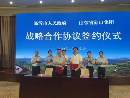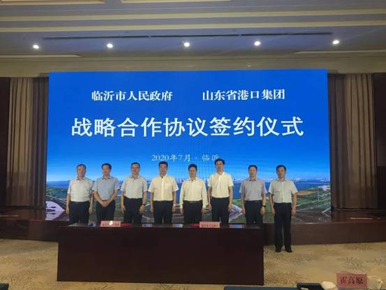 7月22日上午,临沂市人民政府与山东省港口集团有限公司战略合作协议签订仪式举行。山东港口集团党委书记、董事长霍高原,山东港口集团党委副书记、董事、总经理李奉利,山东港口集团董事会秘书、办公室主任刘志国,山东港口陆海国际物流集团党委书记、执行董事、总经理李武成,市委副书记、市长孟庆斌,市委常委、常务副市长侯晓滨,市政协副主席、临沂商城管委会主任李宗涛,市政府秘书长解红日,市政府副秘书长王鑫出席。孟庆斌、霍高原分别致辞。